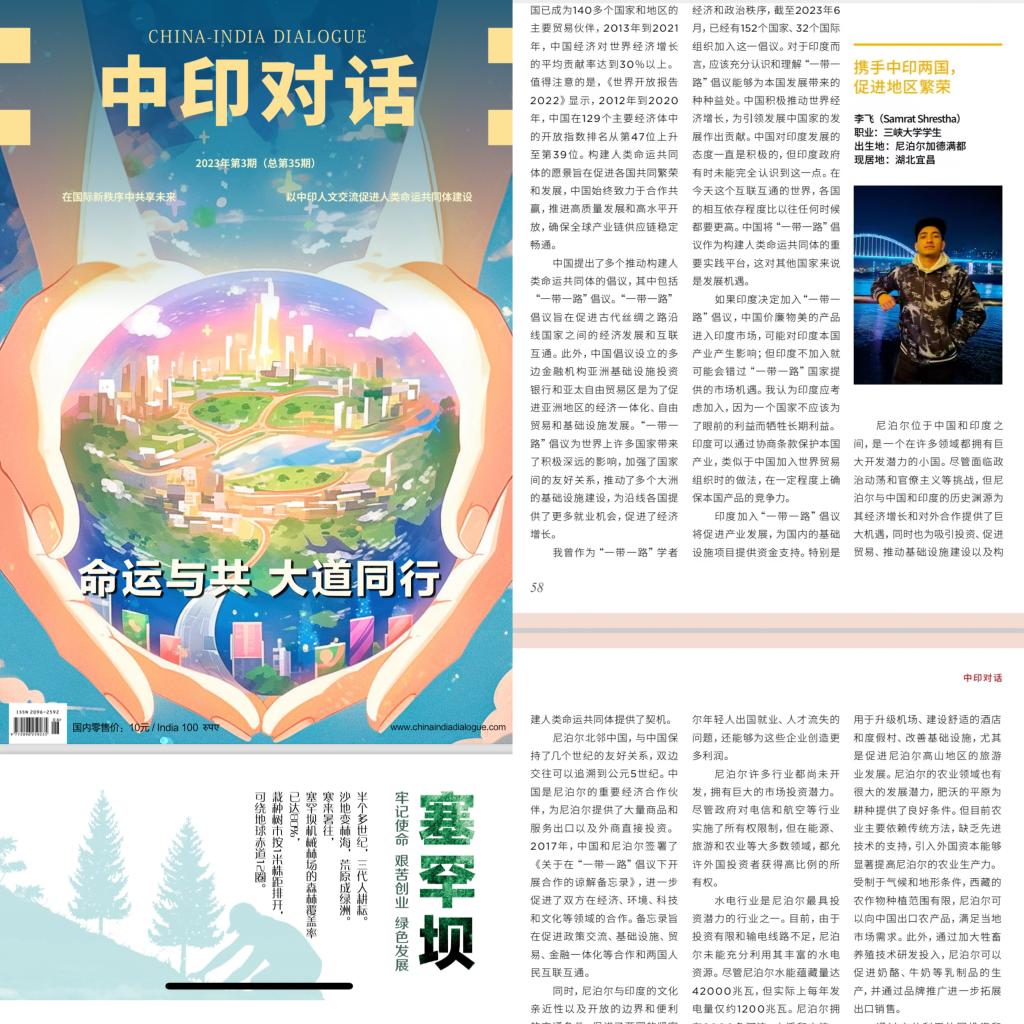 近日,尼泊尔研究中心实习生李飞(Samrat Shresha)在中心实习期间被推荐参加人民画报社论坛,并在《中印对话》发表署名文章,展示新生代国际学生传递中国声音的新模态。