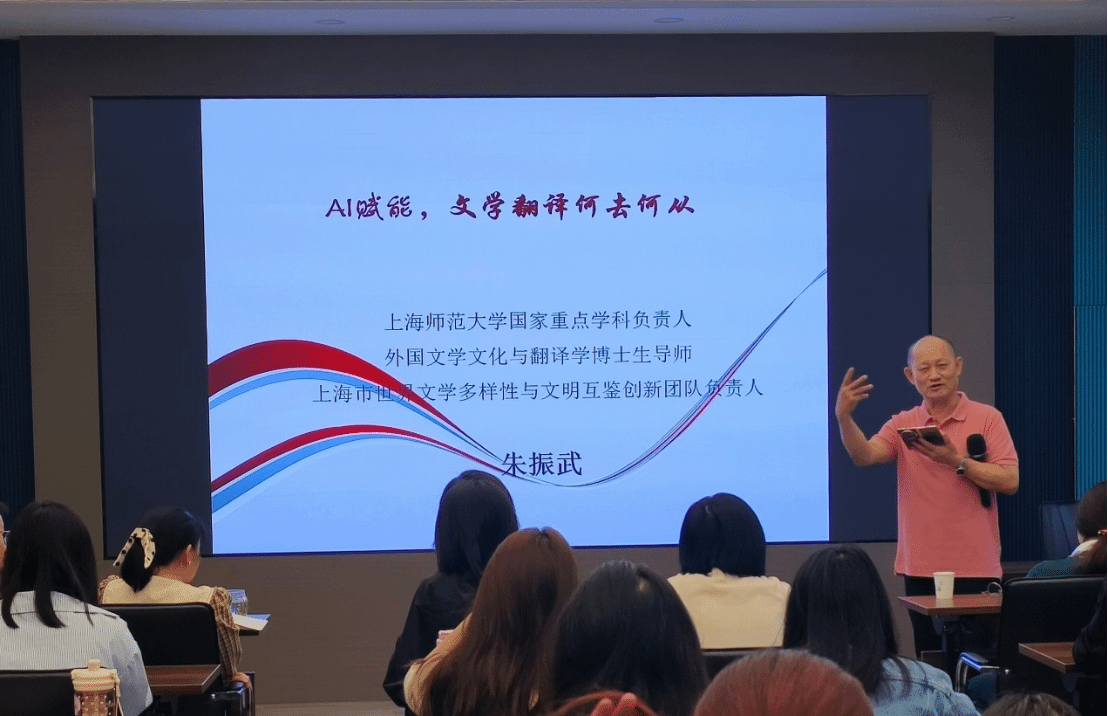 9月28日,上海师范大学朱振武教授应邀为我院师生做了题为《AI赋能,文学翻译何去何从》的学术报告。学院英语语言文学、翻译专业师生及部分其他专业教师参加了报告会。会议由学院副院长屈琼主持。
